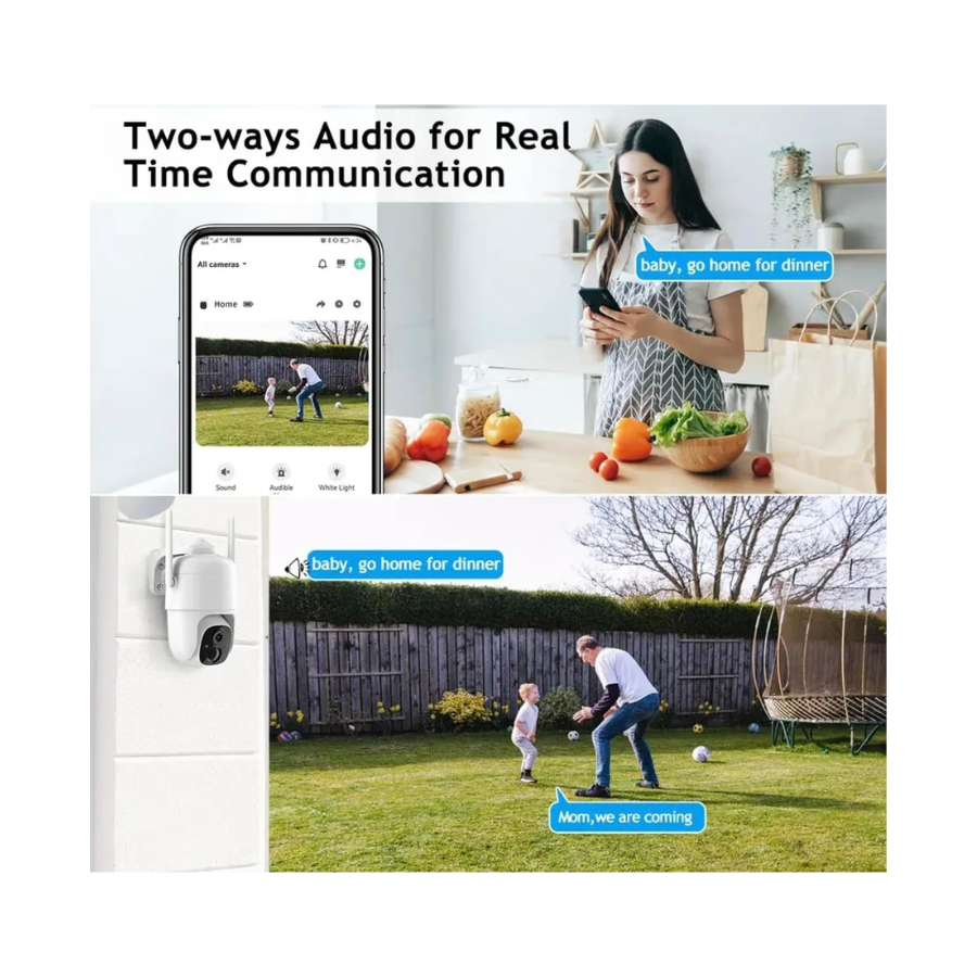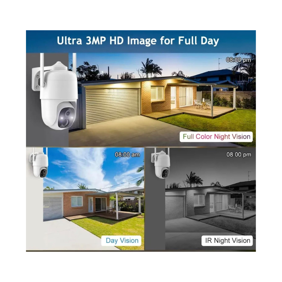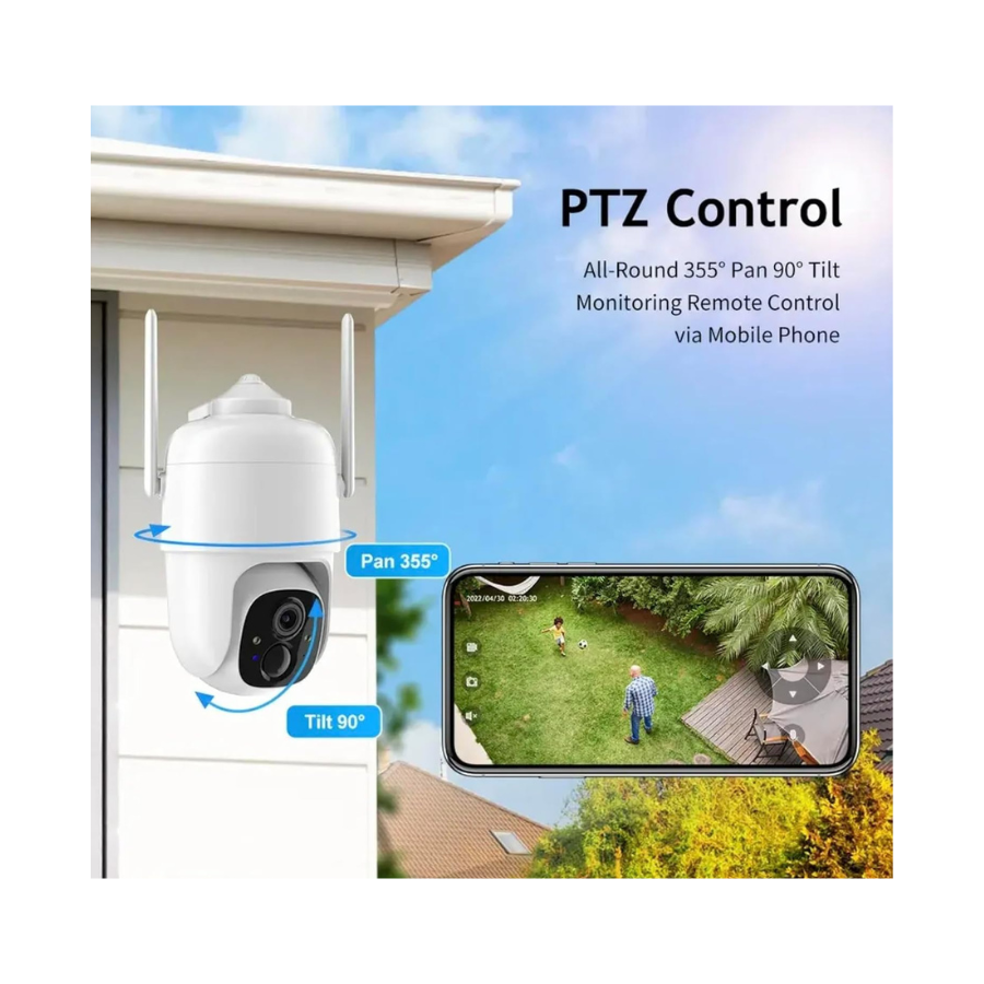 Cette caméra s’adapte à la surveillance de jardins, terrasses, entrées de bâtiment, parkings, cabanons ou zones professionnelles extérieures. Sa vision nocturne couleur et sa rotation motorisée permettent une surveillance complète même en faible luminosité. Elle convient également aux entreprises souhaitant une caméra autonome pour monitorer des zones sensibles sans installation filaire.